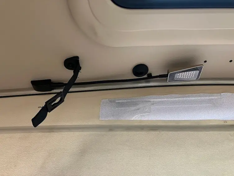 - Hout afgewerkte vloer in het campergedeelte